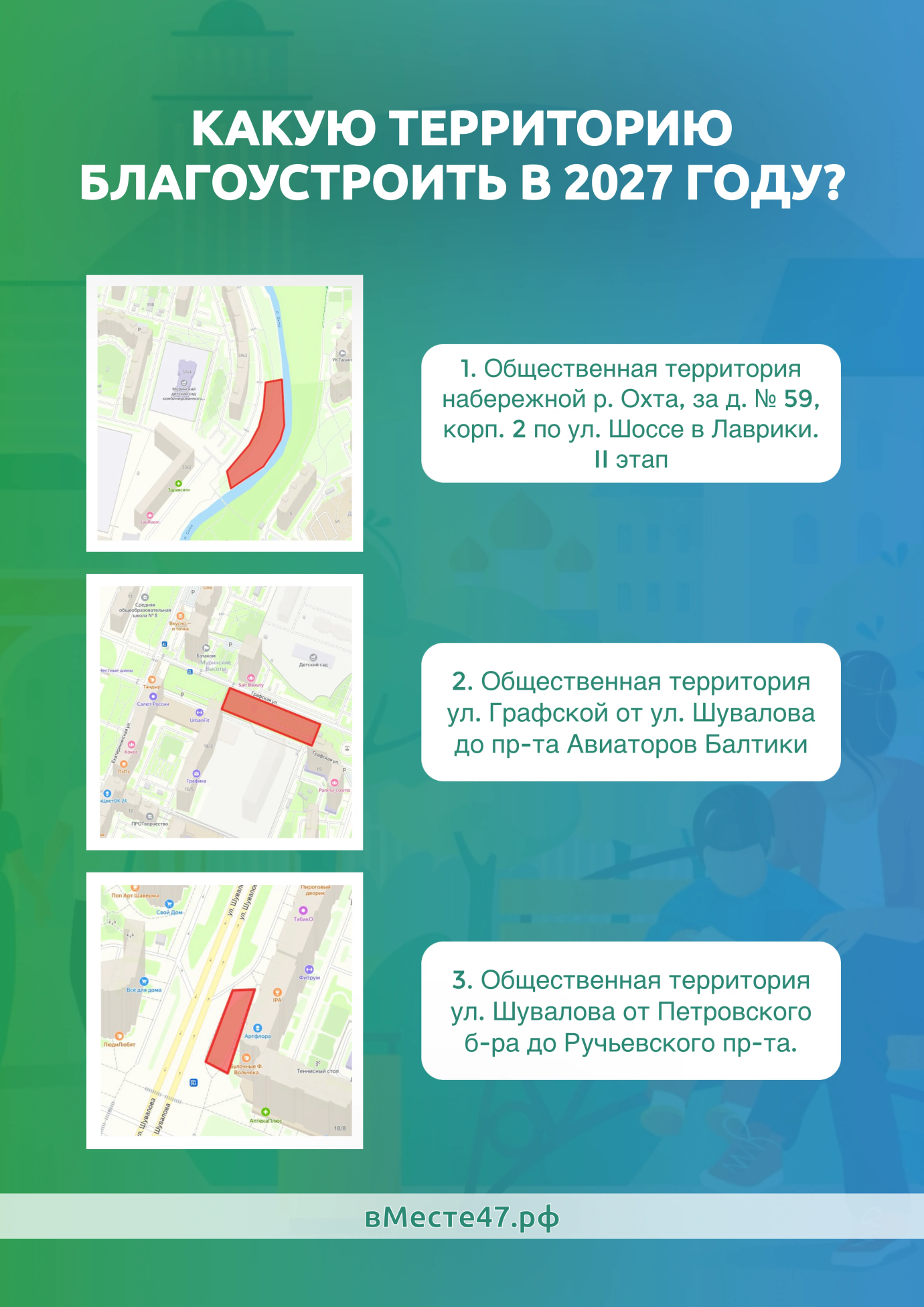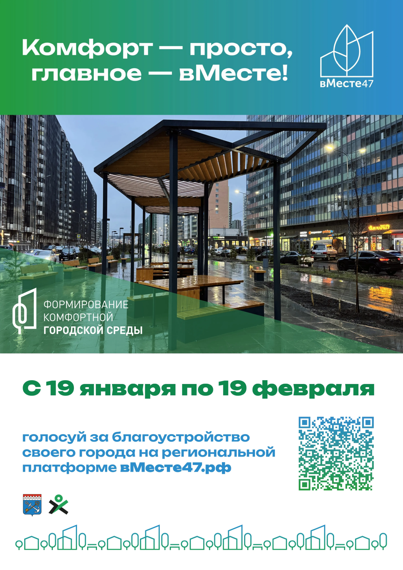C 19 января по 19 февраля 2026 года в Ленинградской области проходит рейтинговое голосование по выбору общественных территорий, которые будут участвовать в Федеральном проекте «Формирование комфортной городской среды» в рамках национального проекта «Инфраструктура для жизни» в 2027 году.