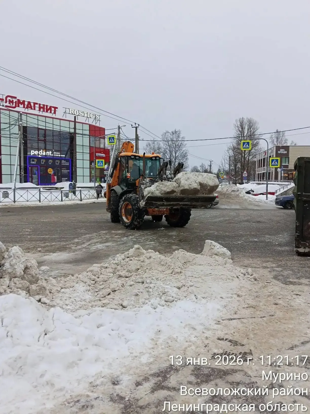За последнюю неделю с территории Мурино было вывезено более 4 000 кубов снега, в том числе, с Западной части – 1820 кубов, с Центральной – 1580 кубов, а с общественных территорий, благоустроенных в рамках ФКГС, 750 кубов снега.