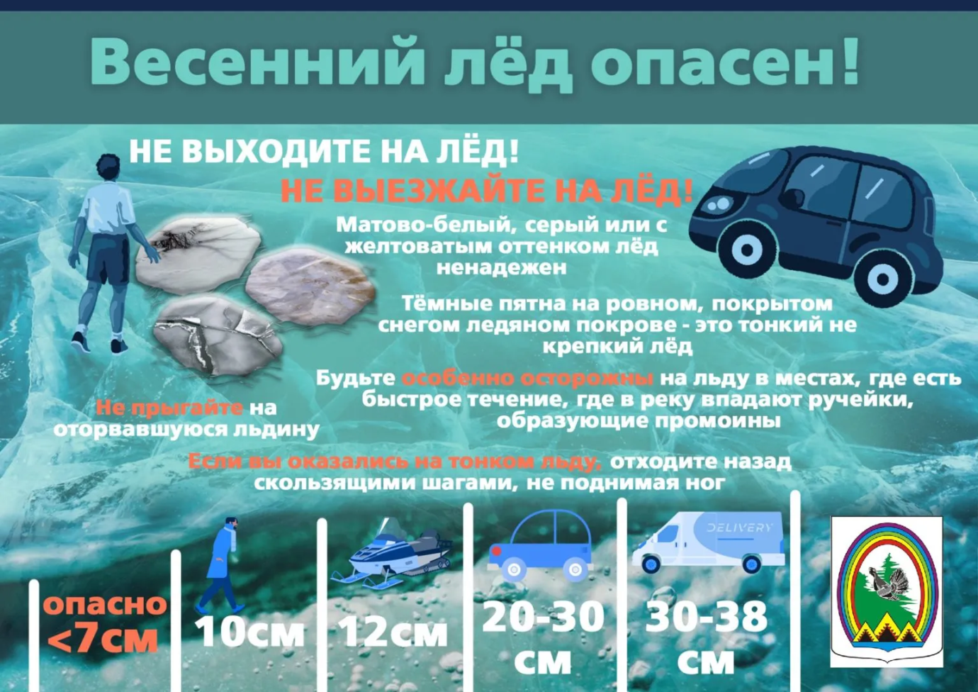 Наступил весенний период, на водных объектах начинается активное таяние льда. Лёд под действием солнечных лучей и повышения температуры воздуха становится с каждым днем все более пористым, рыхлым и слабым. Еще более разрушительное действие на лёд оказывает усиливающееся весной течение воды в реках. Лед в весенний период представляет опасность для вашей жизни, а несоблюдение правил безопасности грозит обернуться огромной бедой. Поэтому напоминаем о простых правилах безопасности: