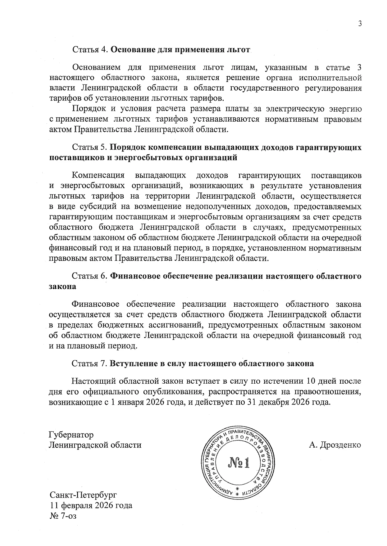 О льготных тарифах в сфере электроснабжения на территории Ленинградской области
