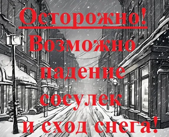 В связи с активным снегопадом, а также колебаниями температуры окружающей среды, возможен сход снежных масс и сосулек с крыш зданий. Чаще всего сосульки образуются там, где собственники зданий, сооружений не следят за состоянием крыш, не производят своевременную очистку карнизов от намерзшего льда, снега.