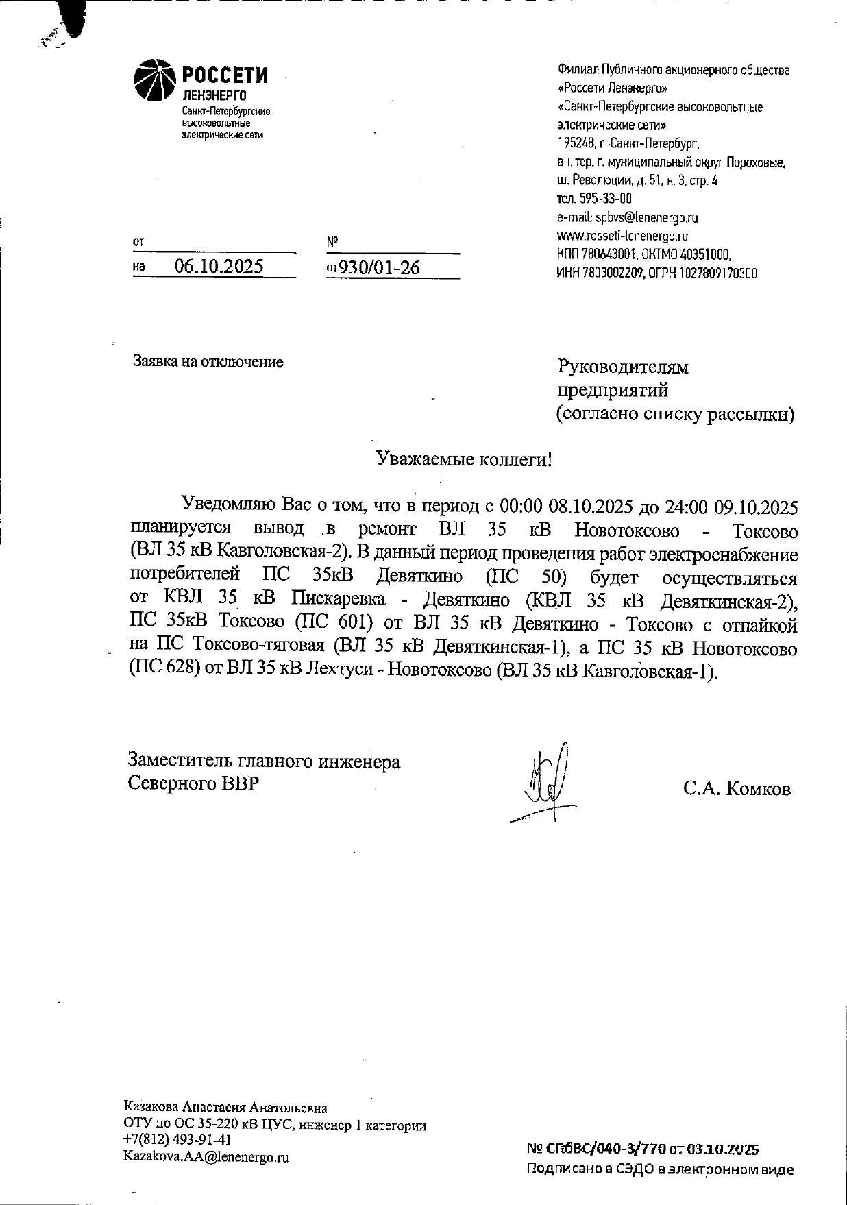 Россети "Ленэнерго" уведомляют о проведении ремонтных работ с 08.10.2025 по 09.10.2025