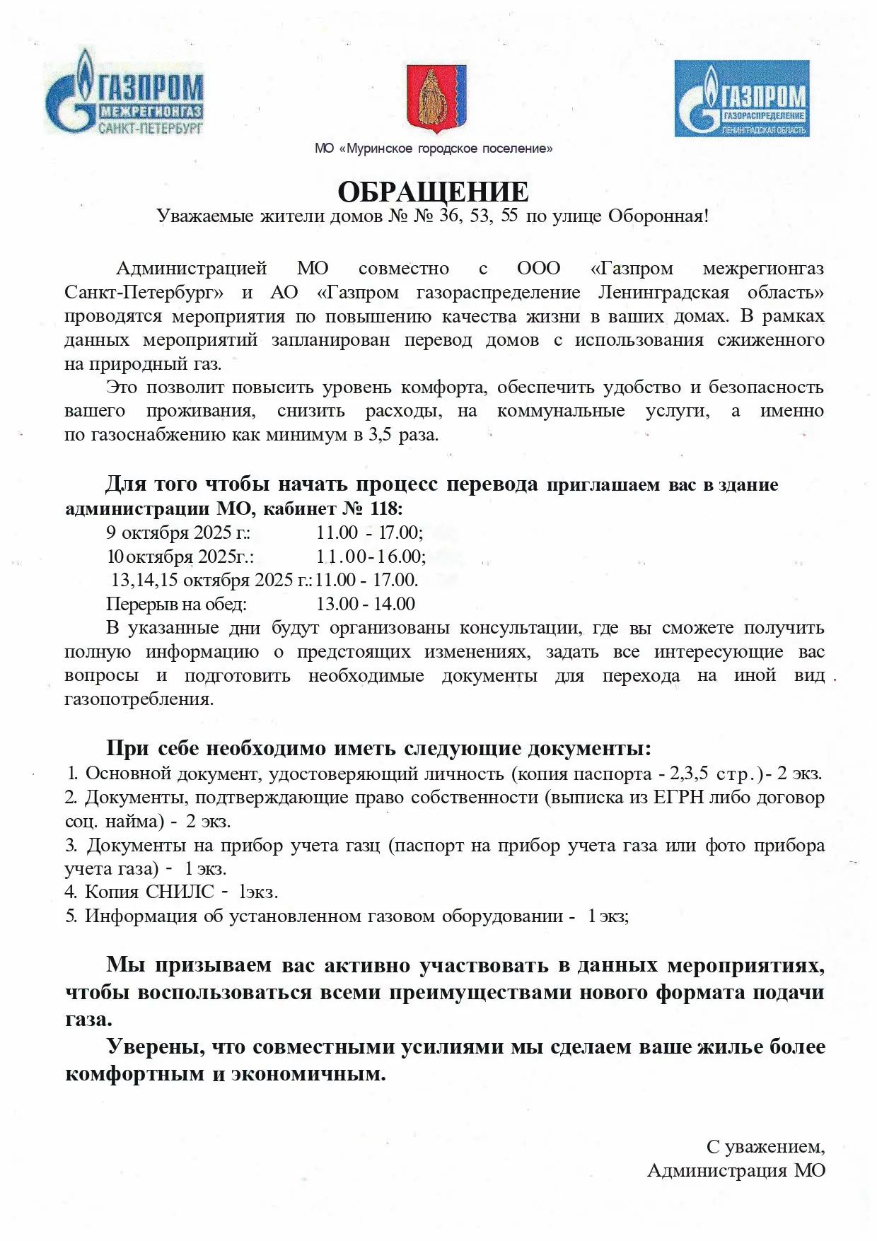 Вниманию жителей домов №№ 36, 53, 55 по ул. Оборонной!