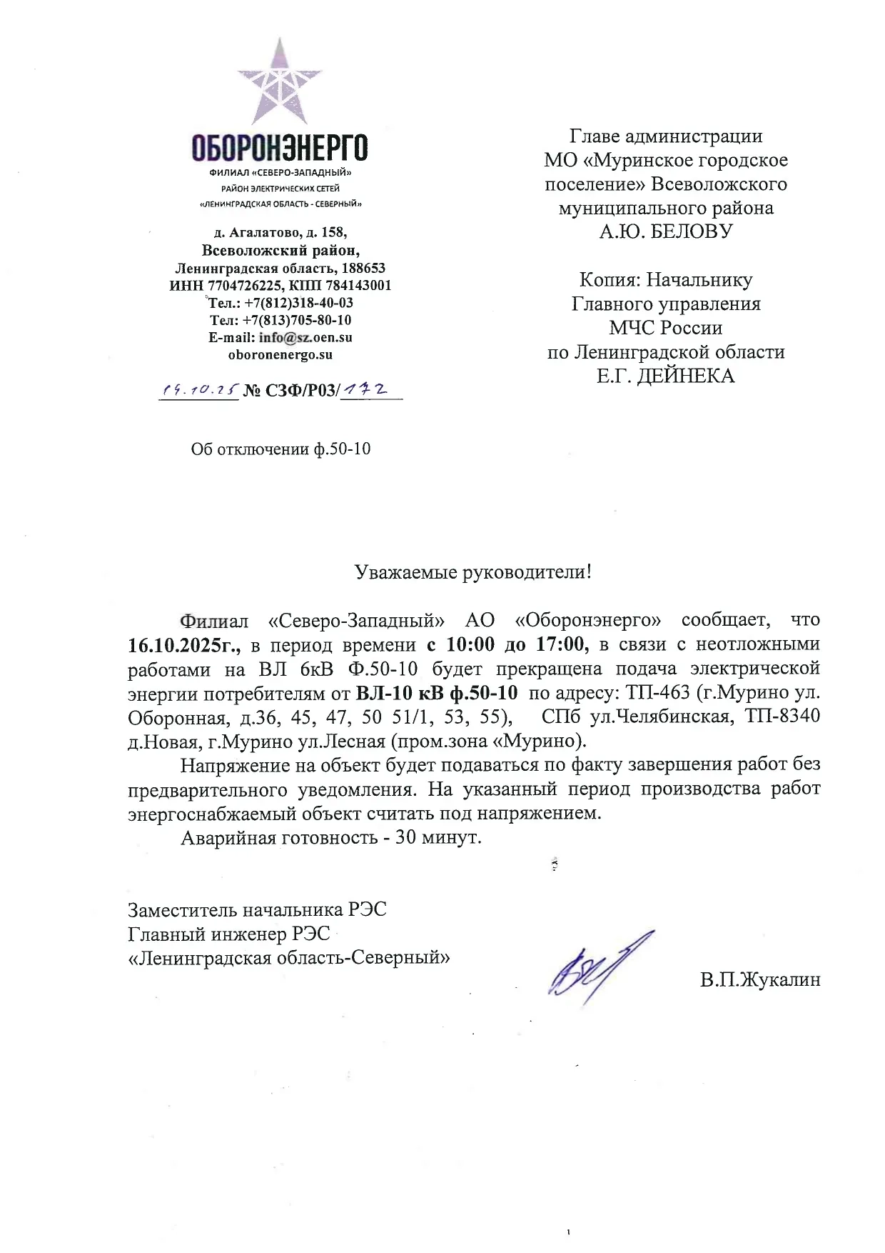 Вниманию жителей: об отключении электроснабжения 16 октября