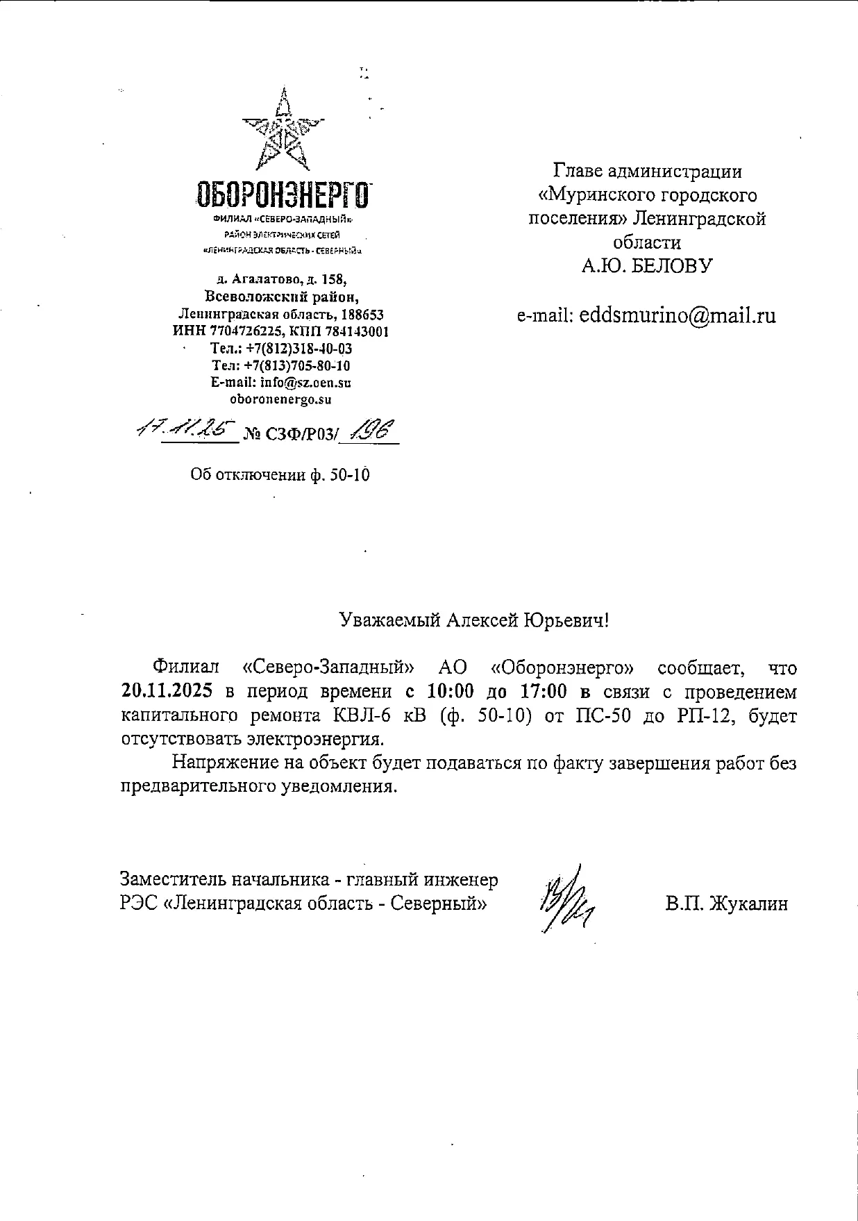 Вниманию жителей ул. Оборонной: отключение электроэнергии 20 октября 2025 года