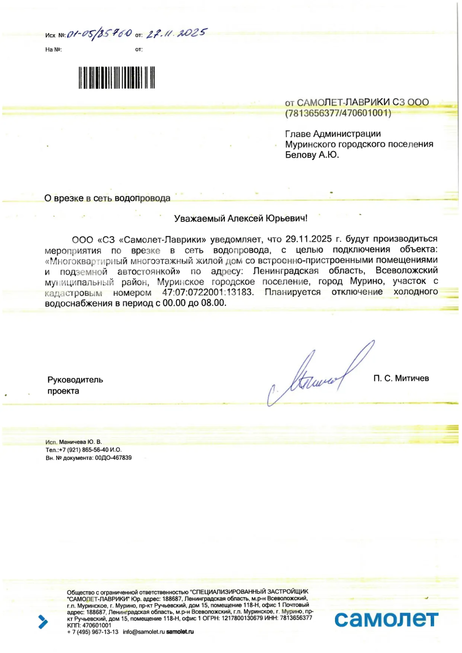Вниманию жителей ул. Романовская и Ручьевского проспекта: информация об отключении ХВС 29 ноября 2025 года