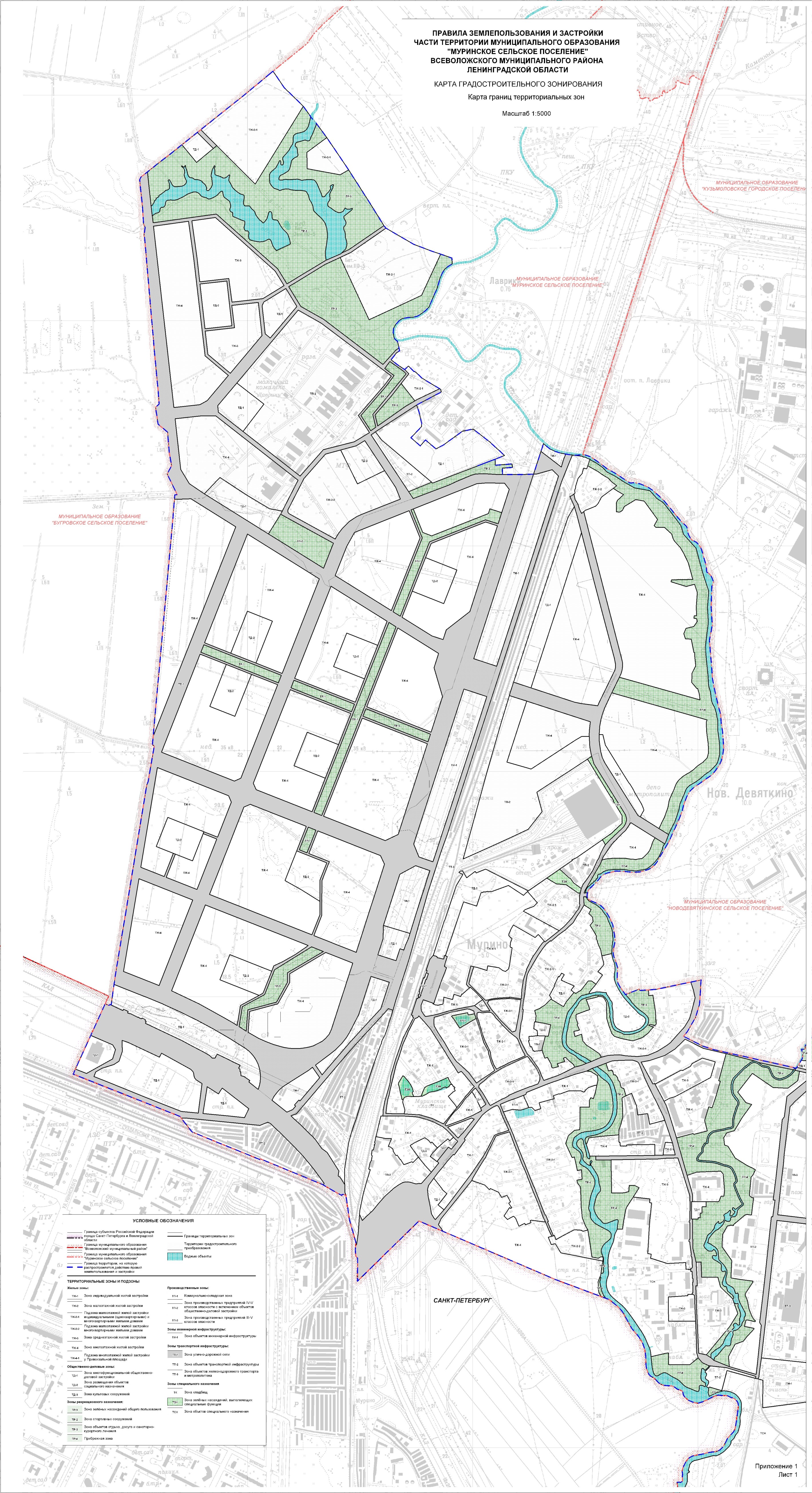 ПРИЛОЖЕНИЕ №1 "Карта границ территориальных зон". Лист 1.