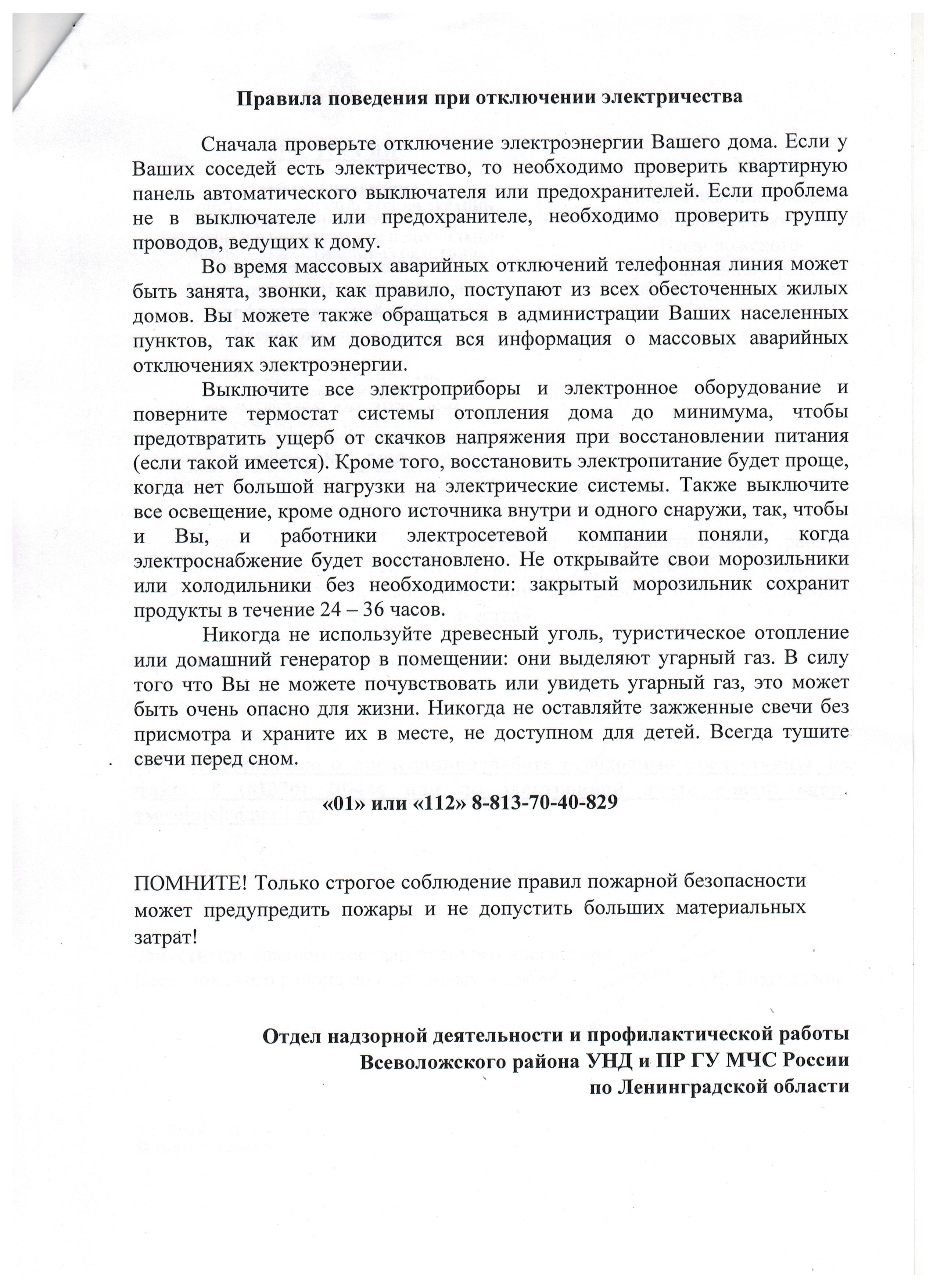 ПРАВИЛА ПОВЕДЕНИЯ ПРИ ОТКЛЮЧЕНИИ ЭЛЕКТРИЧЕСТВА