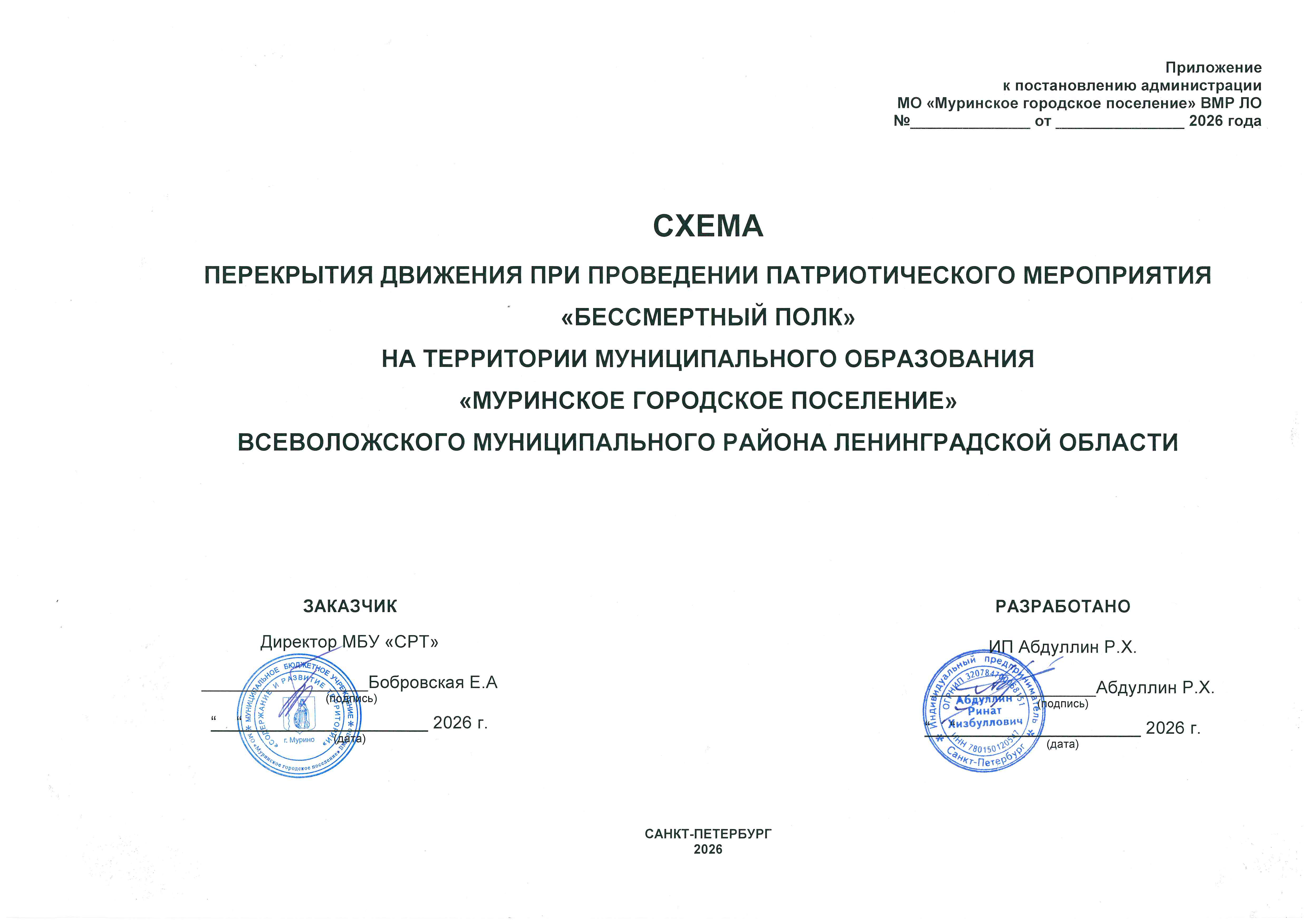 «Об утверждении схемы перекрытия движения при проведении патриотического мероприятия «Бессмертный полк» на территории муниципального образования «Муринское городского поселение» Всеволожского муниципального района Ленинградской области»