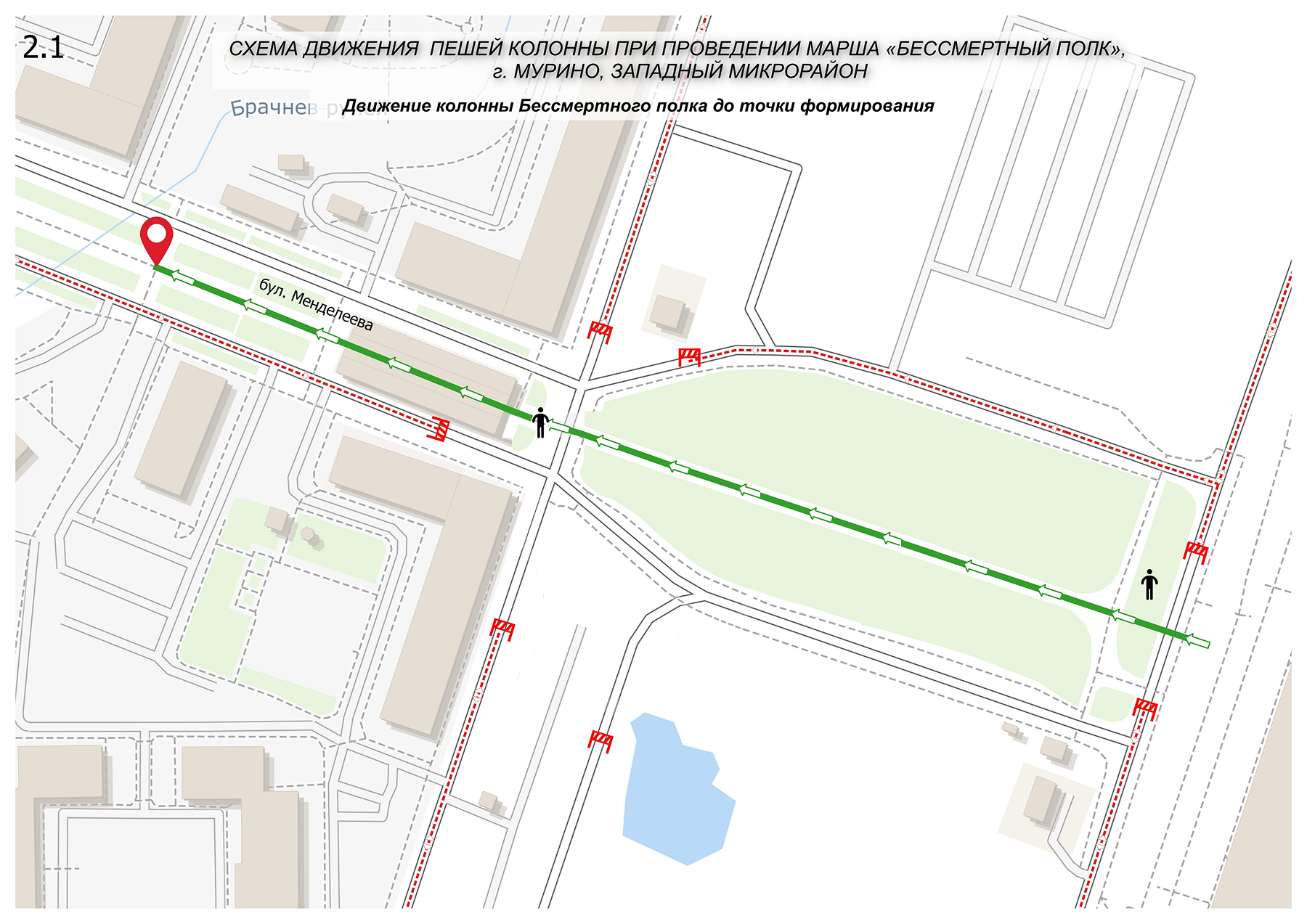 СХЕМА перекрытия движения при проведении патриотического мероприятия "Бессмертный полк" на территории МО "Муринское городское поселение" Всеволожского муниципального района Ленинградской области"